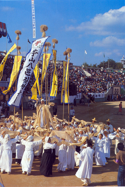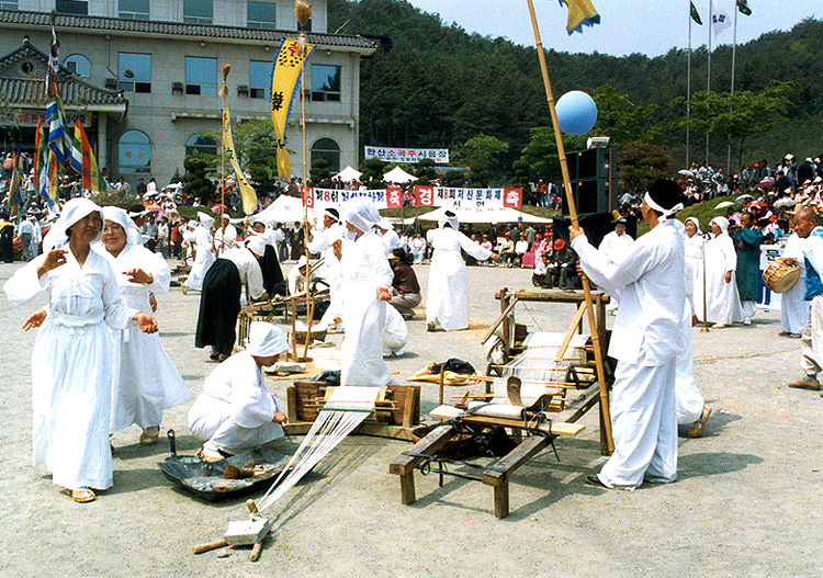 신라 유리왕(재위 24~57)이 두 왕녀로 하여금 부내의 여자들을 나누어 길쌈을 하게 하고, 추석날에 결과를 심사하여 진 편에서 이긴 편에게 술과 음식을 대접하였다는 「삼국사기」기록에 근거 민속놀이를 보존ㆍ계승코자 모시길쌈놀이를 체계적인 고증과 구성 연출을 통하여 「저산팔읍(苧産八邑)길쌈놀이」를 발굴 매년 모시문화제 행사시 시연을 통해 국내외에 알리고 있는 민속 놀이 모시는 충남의 특산물로 특히 한산(韓山)을 중심으로 인근 8개시군(팔읍(八邑)) 즉 한산(韓山), 서천(舒川), 비인(庇仁), 홍산(鴻山)과, 임천(林川), 남포(藍浦), 정산(定山), 보령(保寧)은 모시길쌈의 고장으로 널리 알려진 곳이며 이 중에서도 한산은 예로부터 모시짜기의 본고장이다. 또한 모시는 옛부터 나라에 진상함은 물론 외국에도 수출도 하였으며 나라에서는 생산을 장려하기 위하여 길쌈의 경연대회가 있었다는 문헌(삼국사기)을 통하여 볼 때 일찍부터 모시길쌈과 관련된 민속이 있었을 것으로 여겨진다. 따라서 조선시대에는 상거래(商去來)가 성행하면서 보부상(褓負商)의 조직이 전국 각지에 있었고, 모시의 유통이 이러한 조직하에 거래되어 왔다. 서천 저산팔읍 길쌈놀이는 모시짜기로 유명한 한산지방을 중심으로 발달한 베짜기에 관한 민속놀이로 주로 부녀자들의 가내수공업이었다. 신라 유리왕(재위 24∼57)이 두 왕녀로 하여금 부내의 여자들을 나누어 길쌈을 하게 하고, 추석날에 결과를 심사하여 진 편에서 이긴 편에게 술과 음식을 대접하였다는 『삼국사기』기록으로 미루어 일찍부터 모시길쌈이 있었으며, 나라에서도 이를 장려하였다는 것을 알 수 있다. 길쌈놀이는 모시를 베어다 모시베끼기, 모시삼기, 모시꾸리감기, 모시날기, 모시매기, 모시짜기 등으로 이어지는 일련의 과정을 노래와 행위로 표현하고 있다. 노래는 민요풍으로 여인네의 애환과 체념, 그리움 등의 내용을 담고 있다. 또 저산팔읍을 예찬하는 노래에 맞추어 흥겹게 춤추면서 농사의 고달품을 잊고, 이웃과 화합을 꾀하며 협동을 다진다. 발표가 끝나면 모든 사람들이 원을 그리며 춤을 추고 장원을 한 마을을 축하해준다.