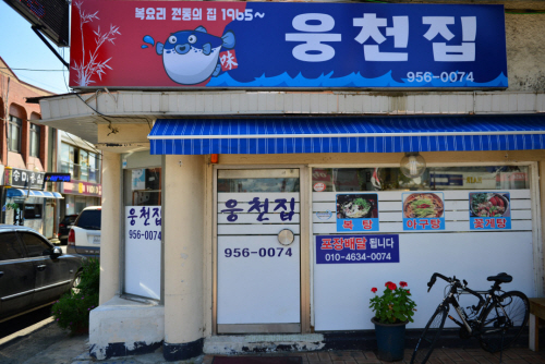 “어제도 오늘도 쫄복으로 장항의 전설이 되어 버린 웅천집” 어느 새 3대째 이어 내려오고 있는 웅천집은 1965년부터 그 맛을 찾아야 하니 반세기를 더 거슬러 올라가야 제대로 익은 뒷얘기를 들을 수 있다. 인기 있는 대표 음식은 쫄복탕.